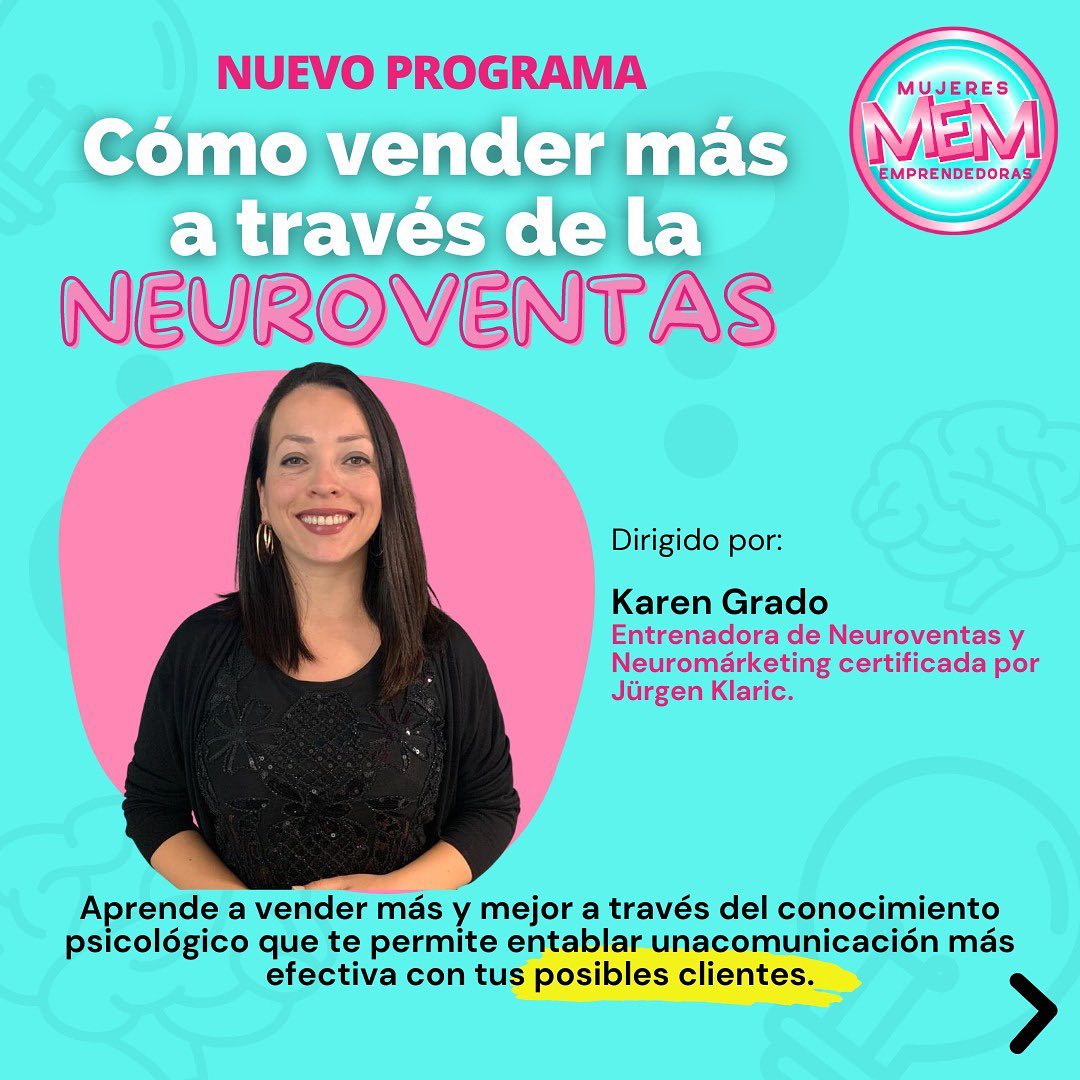 El programa, que comenzó este mes de junio y se impartirá hasta marzo de 2024 de manera online, ?te entregará los conocimientos y técnicas más reciente de las neuroventas, neuromárketing y el estudio del comportamiento humano, para que puedan incrementar tus ventas comunicándote estratégicamente a través del arte de la persuasión. Además, comprenderás cómo funciona el cerebro de las personas, cómo llamar la atención de tus potenciales clientes y cómo generar deseo de compra?, señala Karen Grado, entrenadora de Neuroventas y Neuromárketing Certificada Por Jürgen Klaric, referente, mundial de esta disciplina.