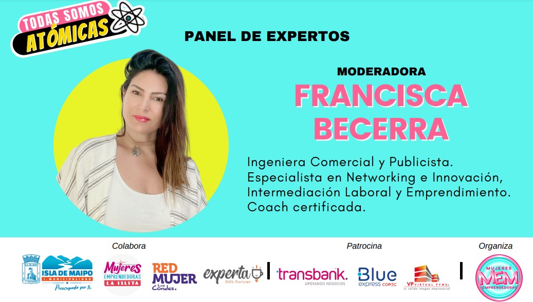 Además, se desarrollará en conversatorio ?Reactiva tu Emprendimiento?, el que será moderado por la ingeniera comercial y publicista Francisca Becerra, coach certificada y especialista en Networking, Innovación, Intermediación Laboral y Emprendimiento; y contará con la participación de los panelistas Carlos Hofmann, subgerente de Segmento Pyme de Blue Express; Roberto Espinoza, Roberto Espinoza, Alianzas y Coordinador Comercial Zona Norte de Transbank; y Claudia Lange Farias, coordinadora Espacio Integral Isla Mujer, de la Municipalidad de Isla de Maipo.