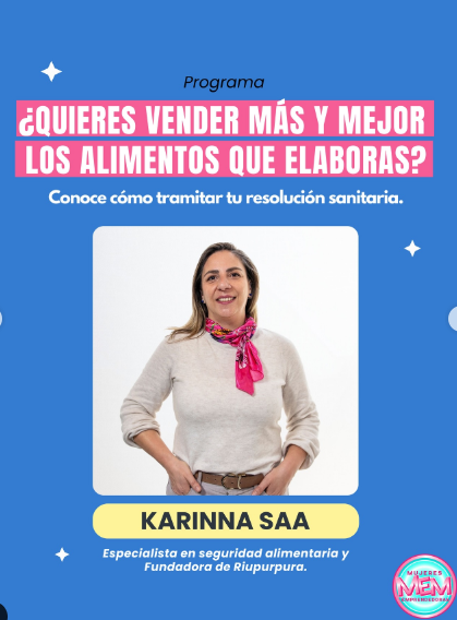 -Karinna Saa: ?Quieres vender ms y mejor los alimentos que elaboras? Conoce cmo tramitar tu resolucin sanitaria" (@riupurpura).