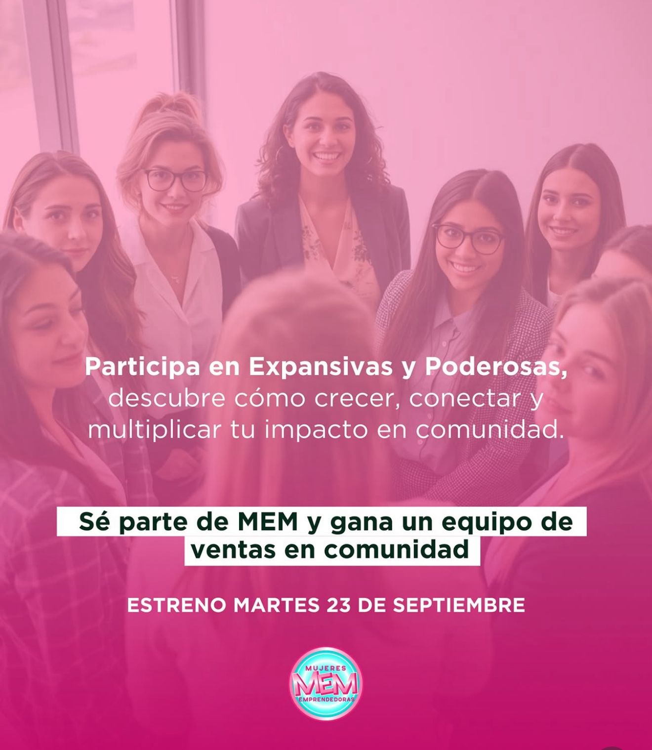 Para este martes 23 de septiembre Comunidad Mujeres Emprendedoras ha decretado el lanzamiento de ?Expansivas & Conectadas, donde tu visibilidad se transforma en oportunidades reales?, su nuevo programa gratuito y exclusivo para socias de MEM creado para abrir puertas, generar contactos y potenciar los negocios en comunidad.
