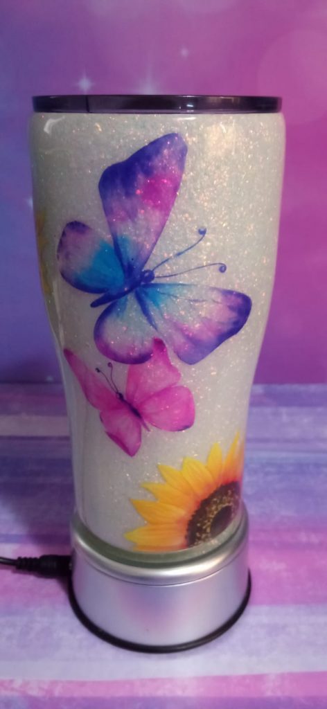 En el mismo sentido, la emprendedora agrega que ?mi principal producto es la personalización de vasos térmicos y láminas de vinilo con glitter y resina epóxica, y actualmente estoy ampliando la gama de productos con llaveros, adornos y otras cosas, pero manteniendo el insumo principal que es la resina. También soy distribuidora de dos empresas estadounidenses, con Gida Design traemos brillos o glitter y con Maestra Creations traemos vinilos, esto con el objetivo de también suministrar los insumos para otras chicas que quieran